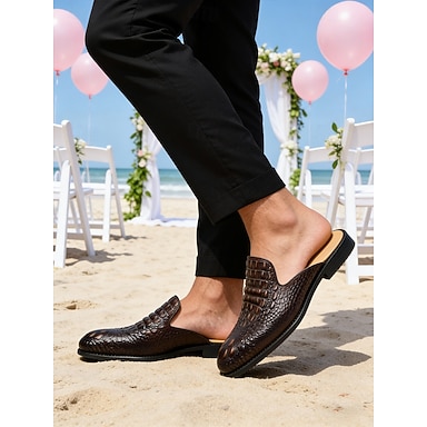 muli da uomo in vera pelle – muli marroni slip-on per matrimoni estivi e feste in spiaggia