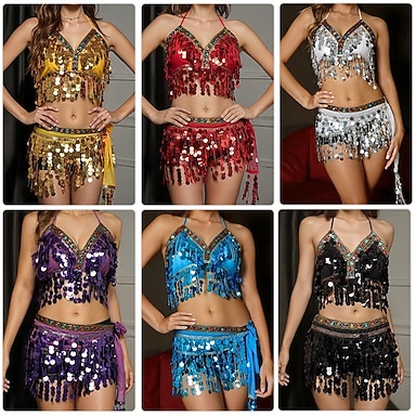Abbigliamento da ballo Samba Dress da danza del ventre con paillettes e frange top reggiseno con sciarpa per le anche Set carnevale clubwear|l Costume da spettacolo