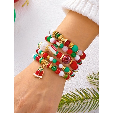 Set di braccialetti natalizi da donna con perline e ciondoli a forma di Babbo Natale, renna e pupazzo di neve, braccialetti elastici con perle rosse e verdi, regalo di gioielli per le feste per lei