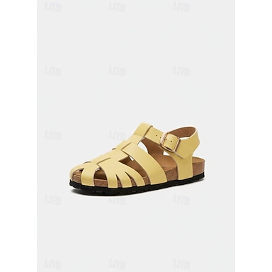sandali gladiatore gialli da donna, sandali da passeggio comodi con fibbia regolabile e plantare in sughero per viaggi estivi, spiaggia &abbigliamento quotidiano