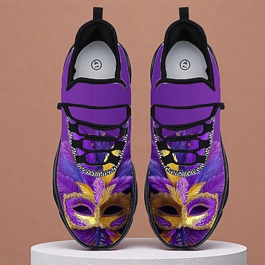 Sneakers comode di Carnevale per donne - Suola leggera e ammortizzata colore Mardi Gras stile audace per ballerini frequentatori di festival sfilate e passeggiate tutto il giorno