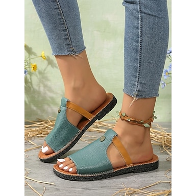 sandali casual verdi bassi da donna - comode ciabatte aperte in morbida similpelle con cinturino posteriore, stile estivo minimalista per spiaggia, vacanze, viaggi, passeggiate all'aperto, shopping