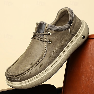 scarpe stringate da uomo in similpelle scamosciata color cachi, robuste scarpe da ginnastica casual antiscivolo per escursioni e attività all'aperto