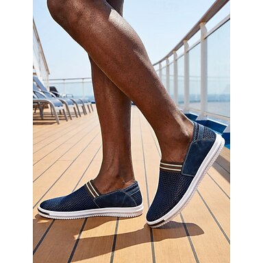 Mocassini da uomo blu navy in rete, scarpe casual leggere e traspiranti, stile isola e crociera, perfetti per le vacanze estive, i ponti delle navi da crociera e i viaggi.