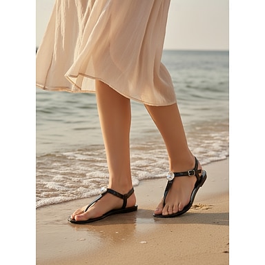 Sandali bassi da donna con cinturino a T e strass – eleganti sandali infradito per vacanze al resort e all'aperto