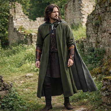 Set Vintage Medievale Rinascimento Cappotto Pantaloni Mantello con accessori Lunghe Guerriero Ranger Costume Per uomo Fantasia Halloween Carnevale Fiera Rinascimentale LARP Adulti Costume Tutte le