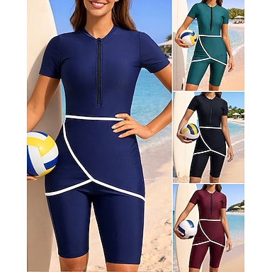 Per donna Top sottomuta Set di costumi da bagno Costumi da bagno 2 pezzi con pantaloncini Patchwork Cerniera Frontale UPF50+ Asciugatura Rapida Alta elasticità Manica Corta Costume da Bagno Surf