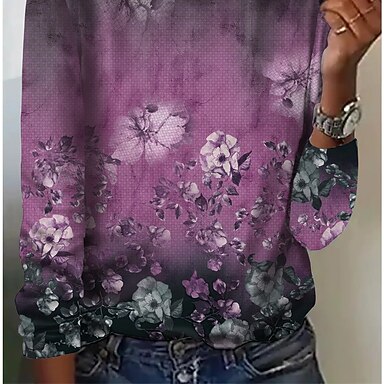 Maglietta da donna a maniche lunghe tunica grafica floreale casual top regolari stampa quotidiana rosa primavera autunno