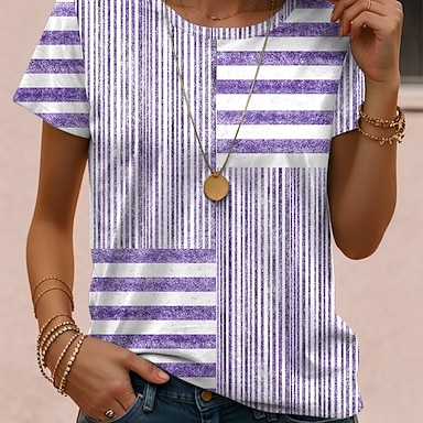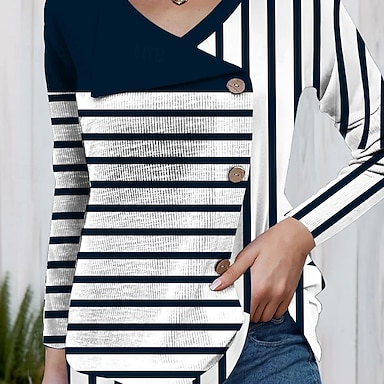 T-shirt da donna con maniche lunghe girocollo maniche lunghe tunica grafica geometrica a righe elegante vintage tops regolari quotidiani uscita weekend stampa rosa blu azzurro pre-autunno