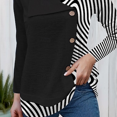 Maglietta da donna a maniche lunghe con scollo tondo tunica grafica geometrica a righe vintage elegante classica top regolari stampa quotidiana bianco nero autunno
