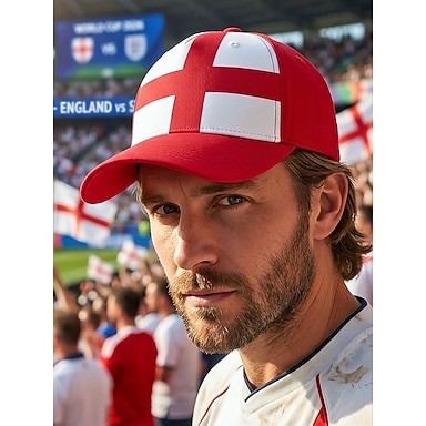 Cappellino da baseball da uomo in poliestere con bandiera inglese, vestibilità regolabile, ideale per tifosi di calcio, eventi calcistici, abbigliamento sportivo casual e attività all'aperto di tutti i giorni.