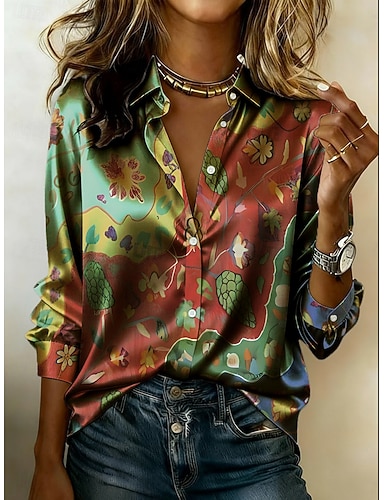 Per donna Camicia Camicia in raso Stampato Floreale Grafico Bohemien Vintage Classico Manica Lunga Colletto a Camicia Top Regolari Quotidiano Ferie Uscire Blu Giallo Rosa Verde Azzurro Estate