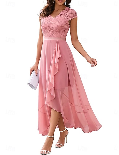 Per donna Lunghezza del tè Abito in Pizzo Vestito da Festa Abito da Cocktail Abito da invitata a nozze Elegante Moda Festa Formale Ospite di nozze Cocktail party Vestibilità regolare Colore Puro