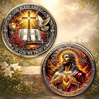 moneta commemorativa della fede cristiana in onore del Sacro Cuore di Gesù, medaglia religiosa da collezione di ispirazione, Sacra Bibbia &croce, dono devozionale per i credenti
