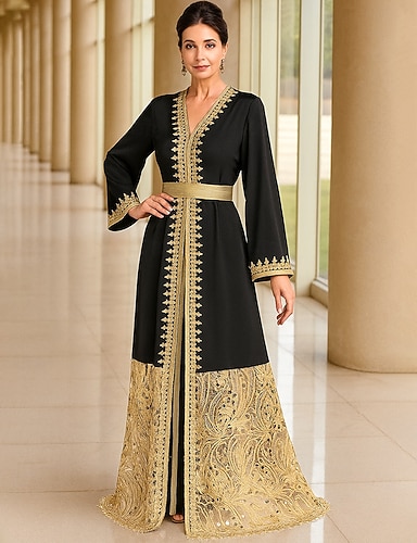 Abito da sposa A-Line lunghezza al pavimento abiti formali abito da sera abito della madre della sposa maniche lunghe scollo a V elegante vintage lussuoso formale con ricamo color block