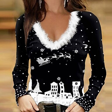 Natale Per donna Blusa Patchwork Stampato Grafico Fiocco di neve Bicchiere di vino Casual Manica Lunga Scollo a V Top Regolari Quotidiano Blu Nero Giallo Verde chiaro Rosa Autunno Inverno