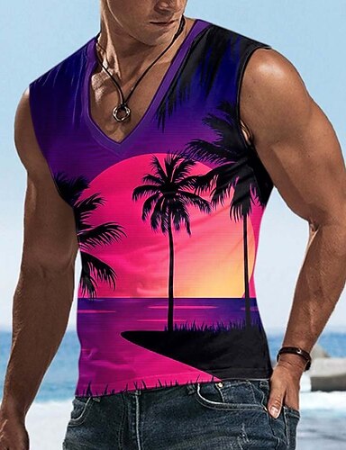 Per uomo Tramonto Maglietta Senza Maniche maglietta Stampa 3D Scollo a V Camicia Tropicale All'aperto Vacanza Camicia hawaiana Blu Viola scuro Viola Estate Primavera Abbigliamento S M L XL XXL XXXL