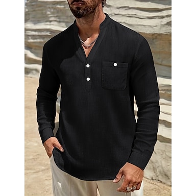 Per uomo Camicia Camicia di lino Stile vichingo Camicia Estiva Abbigliamento da spiaggia Tinta unica Vacanza Streetwear Nero Bianco Blu marino Blu Manica Lunga Henley Estate Primavera Abbigliamento