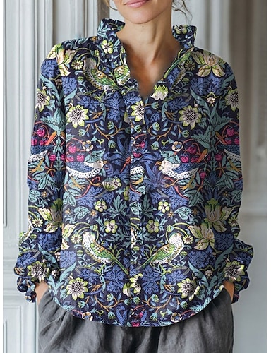 Camicia da donna camicia tunica con bottone colletto maniche lunghe grafica floreale vintage tropicale top normali per lavoro quotidiana stampa blu marrone verde primavera autunno