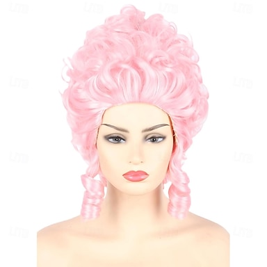 parrucca da drag queen a nido d'ape rosa in polvere per donne, parrucche barocche rinascimentali cotonate, corte e ricce