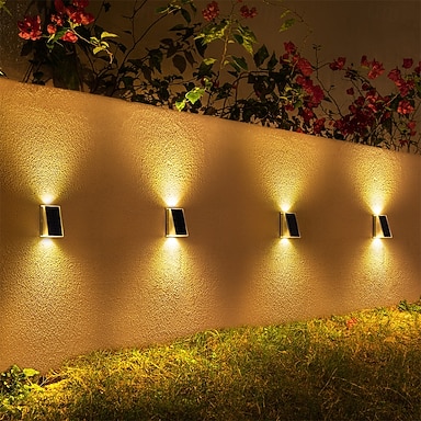 2 luci solari da parete per esterni, impermeabili IP65, 4 perline LED, lampade LED decorative per giardino, cortile, recinzione, scale, gradini, patio, prato, illuminazione del percorso