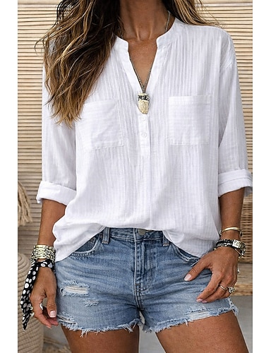 Per donna Camicia Camicie di cotone e lino Finto cotone e lino Tinta unica Semplice Elegante Vacanza Vintage Manica Lunga Top lunghi Quotidiano All'aperto Abbigliamento casual alla moda Blu Rosso