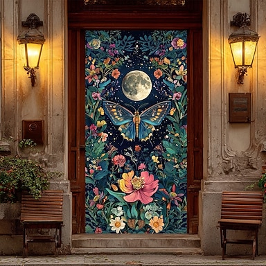 mistica farfalla luna piena fiore giardino porta banner notte foresta vibrante floreale arte fantasy copriporta per ingresso camera da letto arredamento casa sfondo festa