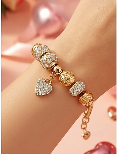 Bracciale da donna con ciondolo a forma di cuore in lega con scintillanti zirconi cubici, perfetto come regalo di San Valentino o da indossare tutti i giorni