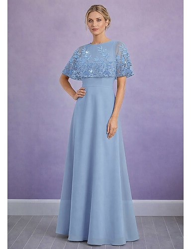 Linea ad A Abito Lunghezza al pavimento Abito da invitata a nozze Abito Formale Abito da sera Abito da cerimonia per signora Manica Corta Girocollo Elegante Semplice Casual Formale Chiffon Scialli con