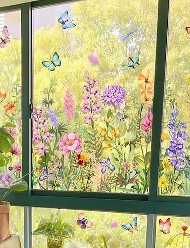 adesivo per finestra bouquet floreale adesivo da parete primaverile colorato decorazione per finestra bifacciale, lavabile, riutilizzabile, perfetto per la casa &arredamento ufficio
