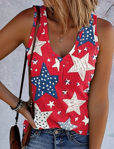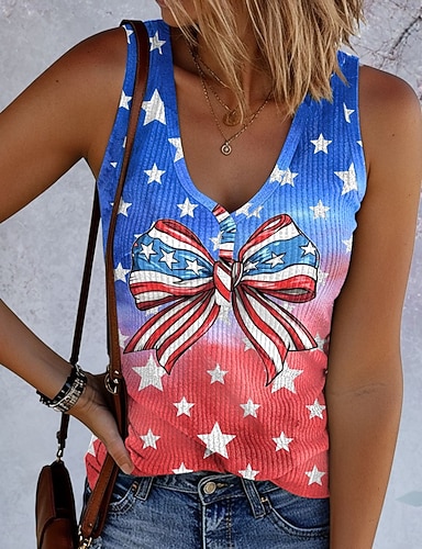 Giorno dell'Indipendenza Americana Per donna Canotta Stampato Grafico Bandiera Vintage Tropicale Elegante Senza Maniche Scollo a V Top Regolari Quotidiano Blu Bianco Rosso Cachi Estate Primavera