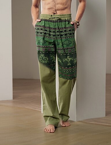 Per uomo Geometrico Blocco di colori Patchwork Pantaloni Pantaloni Larghi Pantaloni casual Misura del girovita medio Vintage Retrò Casa All'aperto Vacanza Coulisse elastica in vita Pantaloni tipo