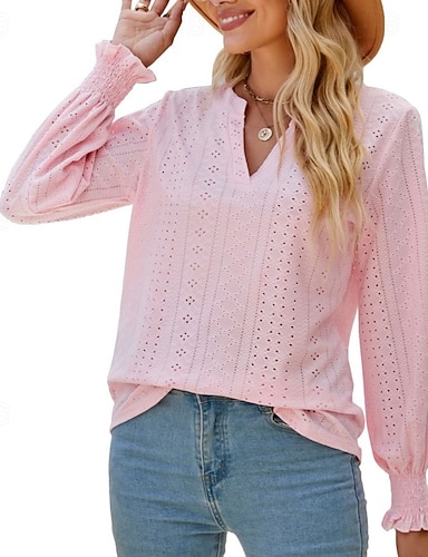 Per donna Camicia Camicia traforata Top traforato Blusa Traforato Semplice Elegante Classico Moderno Manica Lunga Scollo a V Top Regolari Casuale Quotidiano Spiaggia Blu Rosa cipria Nero Rosa Vino