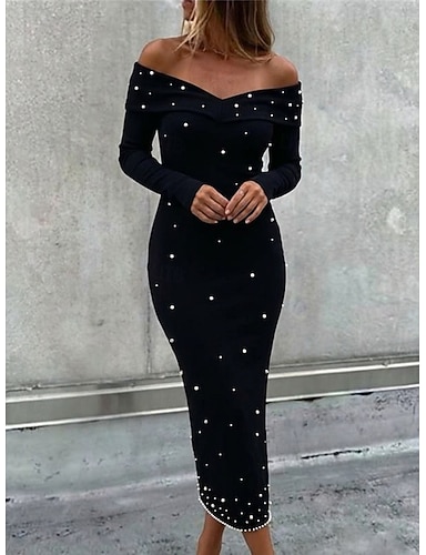 Per donna Mini Abito Abito Bianco Abito nero Abito con Paillettes Elegante Moda Classico Quotidiano All'aperto Feste Vestibilità regolare Semplice Manica Lunga Senza Spalle Nero Bianco Rosa Rosso