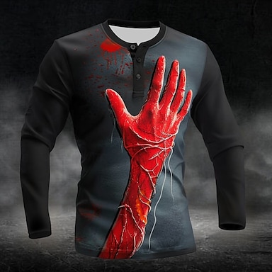 Per uomo Schizzi di sangue Mano Macchie di sangue Maglia Henley Manica Lunga Moda Carino Quotidiano Casuale Ferie Uscire Primavera & Autunno Tutte le stagioni Nero Henley Maglietta Henley