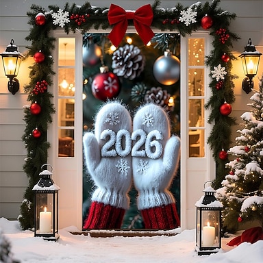 Capodanno Poster Copertura della porta Banner per esterni Buon anno 2026 Carino 3D Da serata Dormitorio Stanza per adolescenti Dormitorio universitario Ragazzi Man Cave Frat Bedroom Sfondi di ripresa