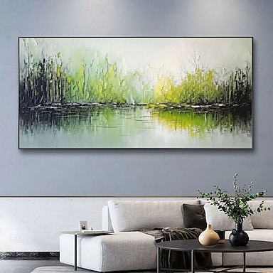paesaggio fatto a mano su tela arte murale astratta moderna contemporanea pittura a olio paesaggio marino verde opera d'arte strutturata decorazione pittura a olio verde astratta
