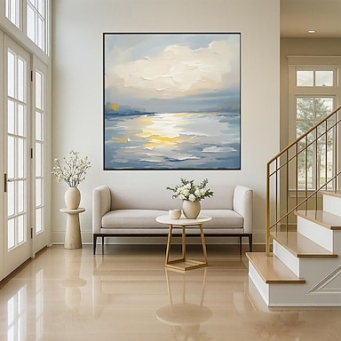 Pittura A Olio Fatta A Mano Dipinta A Mano Arte Della Parete Paesaggio Marino Astratto Tramonto Blu Oceano Decorazione Della Casa Arredamento Cornice Pronta Da Appendere