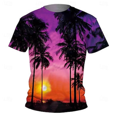 Da ragazzo 3D Pop art Albero di cocco maglietta T-shirt Manica corta Estate Primavera Di tendenza Essenziale Bambino 4-12 anni Girocollo Esterno Informale Giornaliero Standard