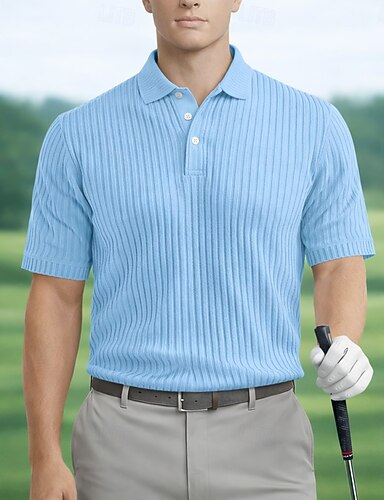 Per uomo Testurizzato Polo da Golf Casuale Sportivo Collo ripiegato Manica Corta Sport Confortevole Semplice Leggero Bottoni Primavera & Estate Blu Bianco Giallo Rosso Blu marino Grigio Testurizzato