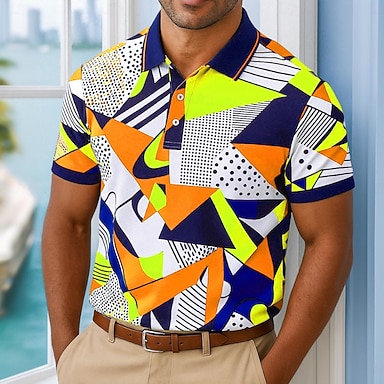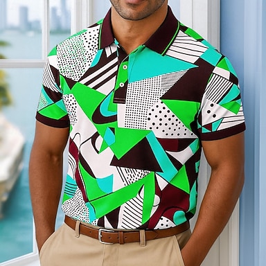 Per uomo Geometrico Polo Manica Corta Magliette polo Camicie con Colletto Business Casual All'aperto Abbigliamento quotidiano Stampa 3D Estate Verde