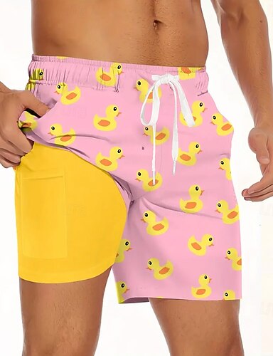 Per uomo Uccello Pappagallo Colore sfumato Pantaloncini foderati Pantaloncini da bagno 2 in 1 Pantaloncini da mare Misura del girovita medio Hawaiano Ferie Tasche Laterali Con Fodera a Compressione
