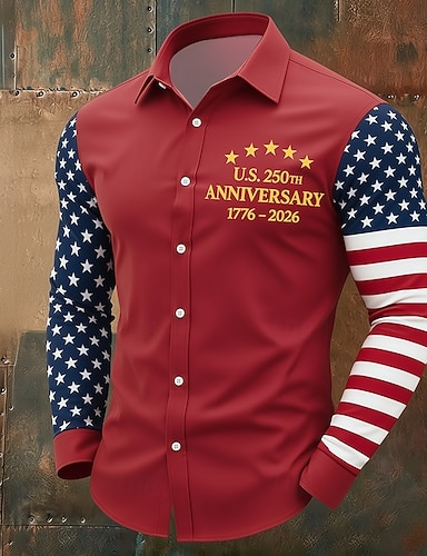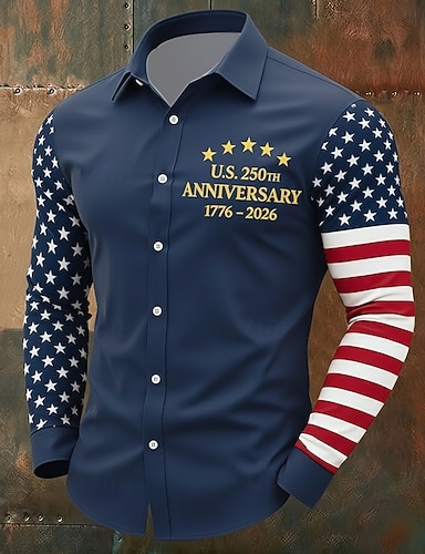 Per uomo Bandiera Americana 4 luglio, 250° anniversario degli Stati Uniti Patriottico Camicia Camicia button-down Manica Corta Moda Casual Abbigliamento casual alla moda Vacanza Abbigliamento mare