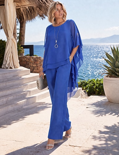 Per donna Set da due pezzi Chiffon Manica Corta Girocollo Semplice Elegante Casuale Quotidiano Vacanza Blu Nero Rosa Estate Vestibilità comoda