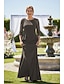 Due Pezzi Tubino Colonna Abito Lunghezza alla caviglia Abito da invitata a nozze Abito da cerimonia per signora Manica Lunga Scollo a V Elegante Abito Nero Formale Ricevimento di matrimonio Riunione