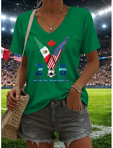 Per donna Maglietta Stampato Grafico Squadra di calcio Elegante Classico Casual Manica Corta Scollo a V Top Regolari Quotidiano Blu Nero Bianco Verde Estate Primavera