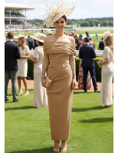 Tubino Colonna Lunghezza alla caviglia Abito da Cocktail Abito da invitata a nozze Abito Derby Abito da cerimonia per signora Manica 3/4 Scollo Tondo Elegante Formale Raso Elasticizzato Crepe