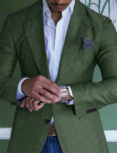 Per uomo Blazer di Lino Giacca Sportiva Colletto ad incastro Leggero Casual Tinta unita Blazer Verde salvia Vestibilità standard Monopetto Due Bottoni