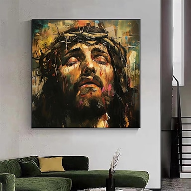 dipinto a olio fatto a mano acrilico tela decorazione artistica da parete figura religiosa volto di Gesù disegno con coltello per arredamento casa dipinto arrotolato senza cornice non allungato