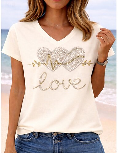 Per donna Maglietta Stampato Cuore Grafico Leopardo Elegante Classico Casual Manica Corta Scollo a V Top Regolari Quotidiano Beige chiaro Nero Bianco Grigio Estate Primavera